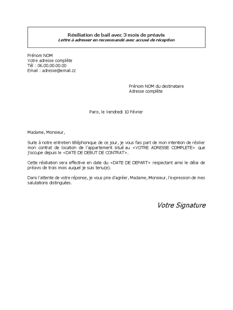 for "Lettre De Preavis 3 Mois - Lettre De Resiliation Bail 3 Mois De Preavis Modele De Lettre"